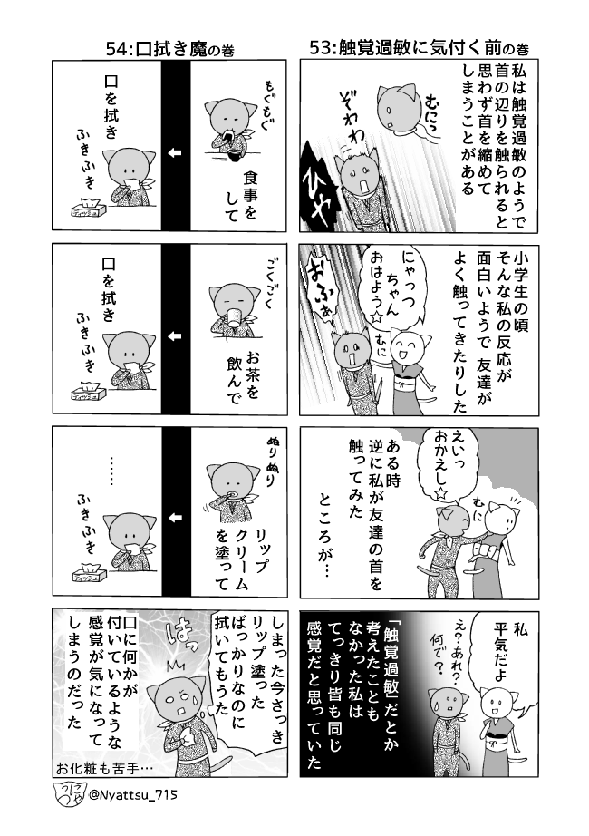 触覚過敏で首もとを触られるのが苦手。口に何かが付いてるような感覚も苦手。