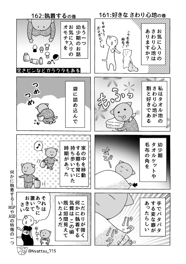 幼い頃から、こだわりが強く何かに執着する事が有った。HSPやASDの特徴の1つと知って納得した。