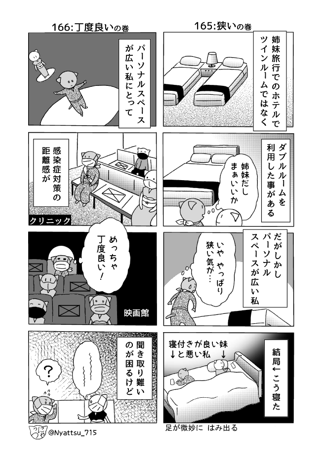 パーソナルスペースが広い私にとって、感染症対策の距離感が丁度良いなと思った漫画。