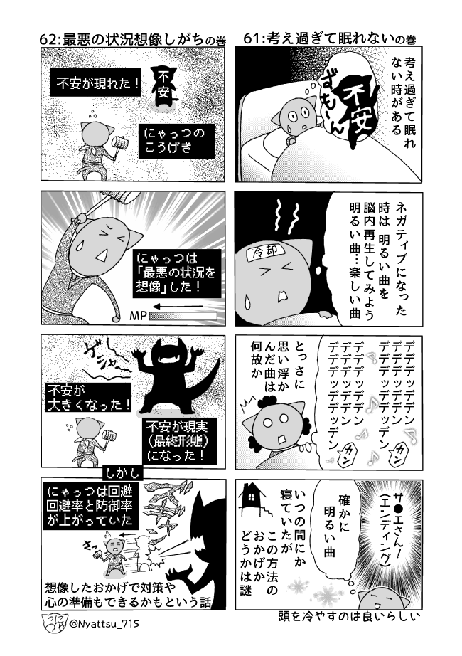 ネガティブな事をグルグル考え過ぎて眠れない時がある。私の場合を漫画に描いてみたけど、他に良い対策有りそうなので余り参考にはならないかも。