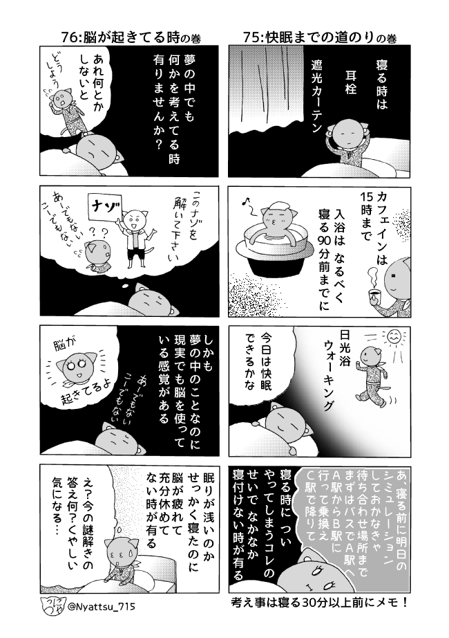 時々、夢の中でも何かを考えていて、現実でも脳を使っている感覚が有る。眠りが浅いのか、せっかく寝たのに脳が疲れて充分に休めていない時も有る。
