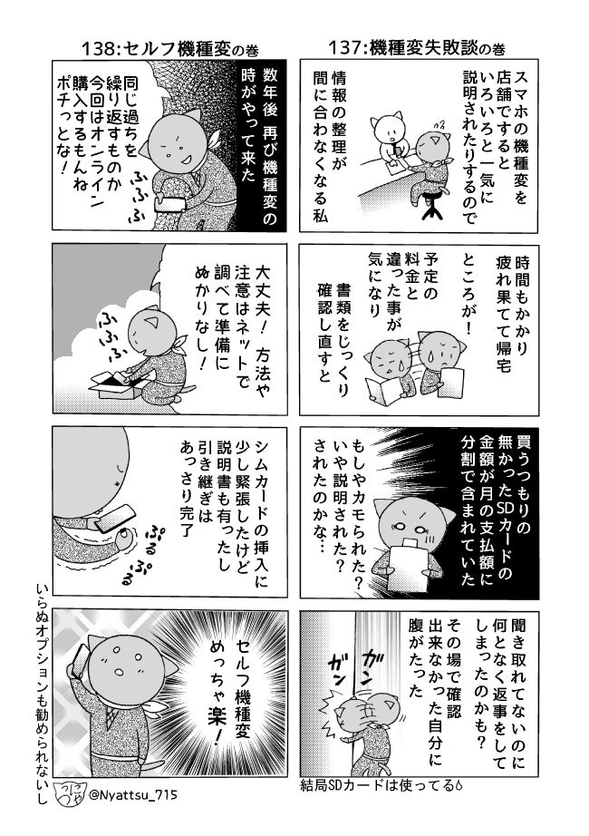 スマホを店舗で機種変した時の失敗談と、セルフ機種変がめっちゃ楽だった…漫画を描いた。